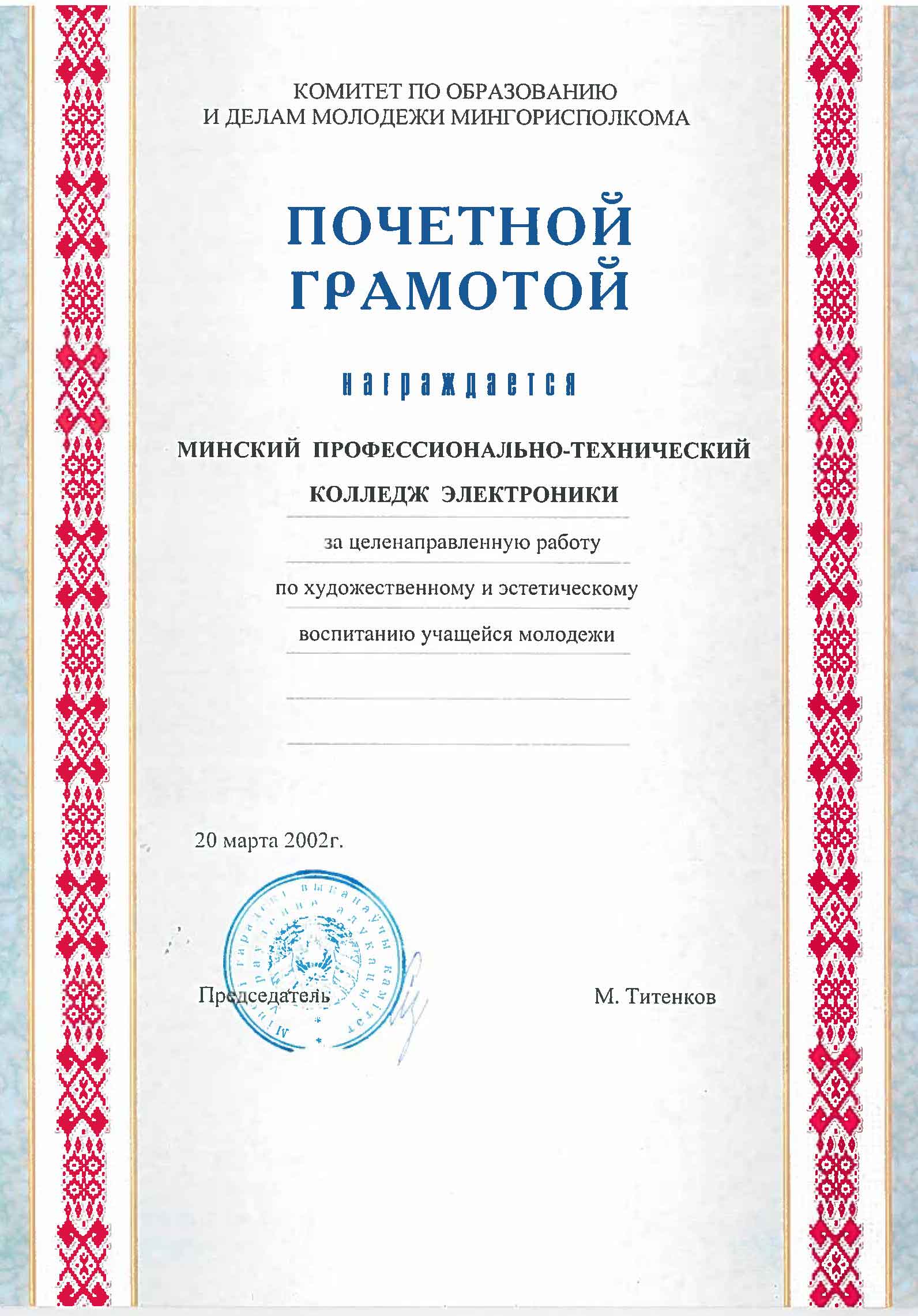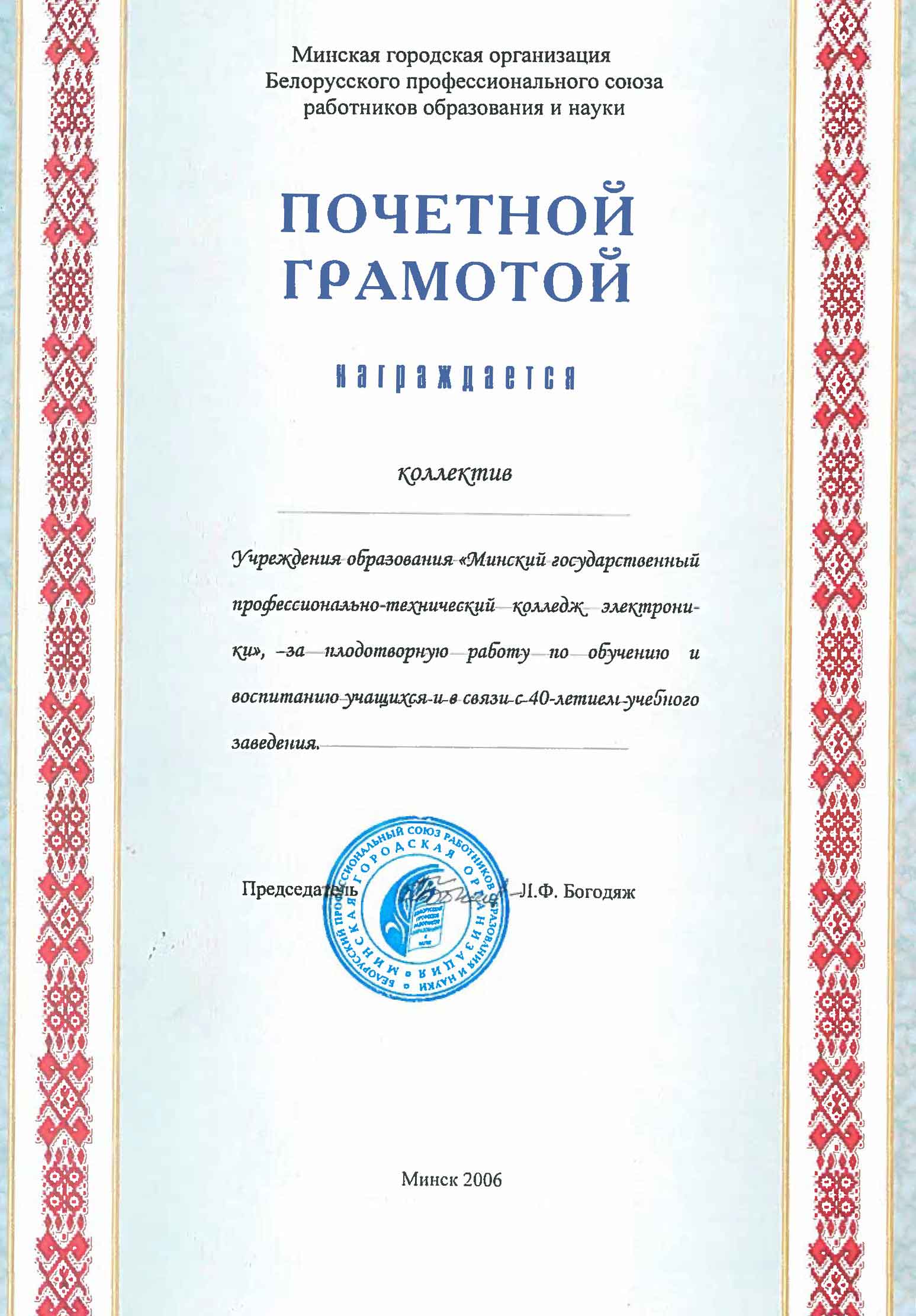 Почетные работники колледжа